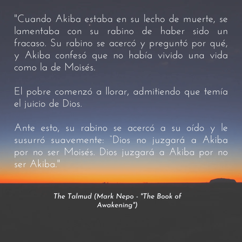 Si eres un pez tu talento no será trepar árboles, por mucho que te den envidia tus amigos monos. Igualmente, ellos envidiarán tu habilidad de nadar sin esfuerzo. Además, si eres un pez no tiene sentido quejarse de que tus amigos monos se divierten en los árboles mientras ignoras el océano que tienes delante de ti.